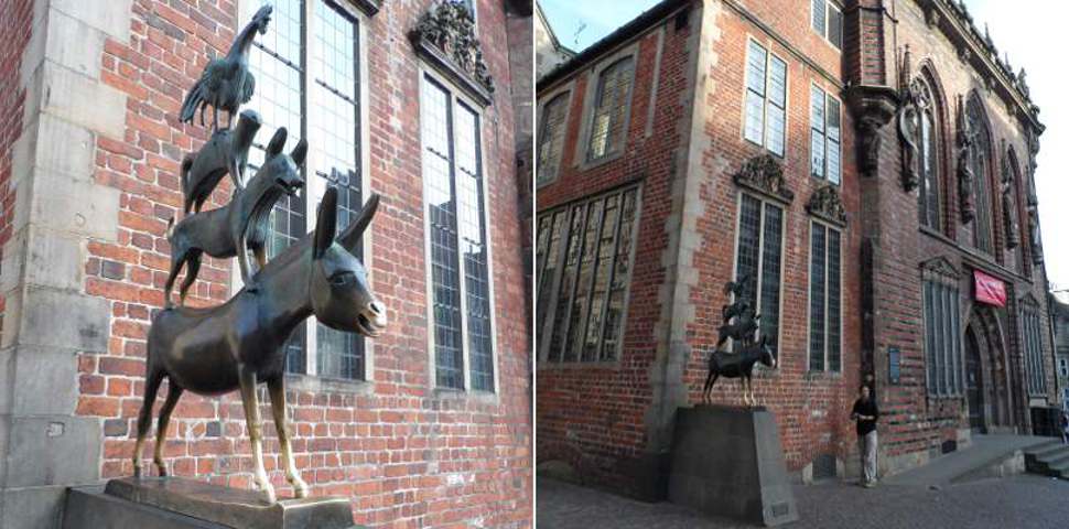 Das erste Ziel in Bremen sind natürlich die Stadtmusikanten. An der Hotelrezeption wurde uns mitgeteilt, dass das wohl bekannteste Wahrzeichen der Hansestadt gar nicht so groß wäre. Doch die Bronzestatue von Gerhard Marcks aus dem Jahre 1953 an der linken Seite des Rathauses ist dann doch nicht zu übersehen. Zahlreiche Besucher fotografieren das Bremer Wahrzeichen und umfassen die Vorderbeine des Esels, damit ein Wunsch in Erfüllung geht.
